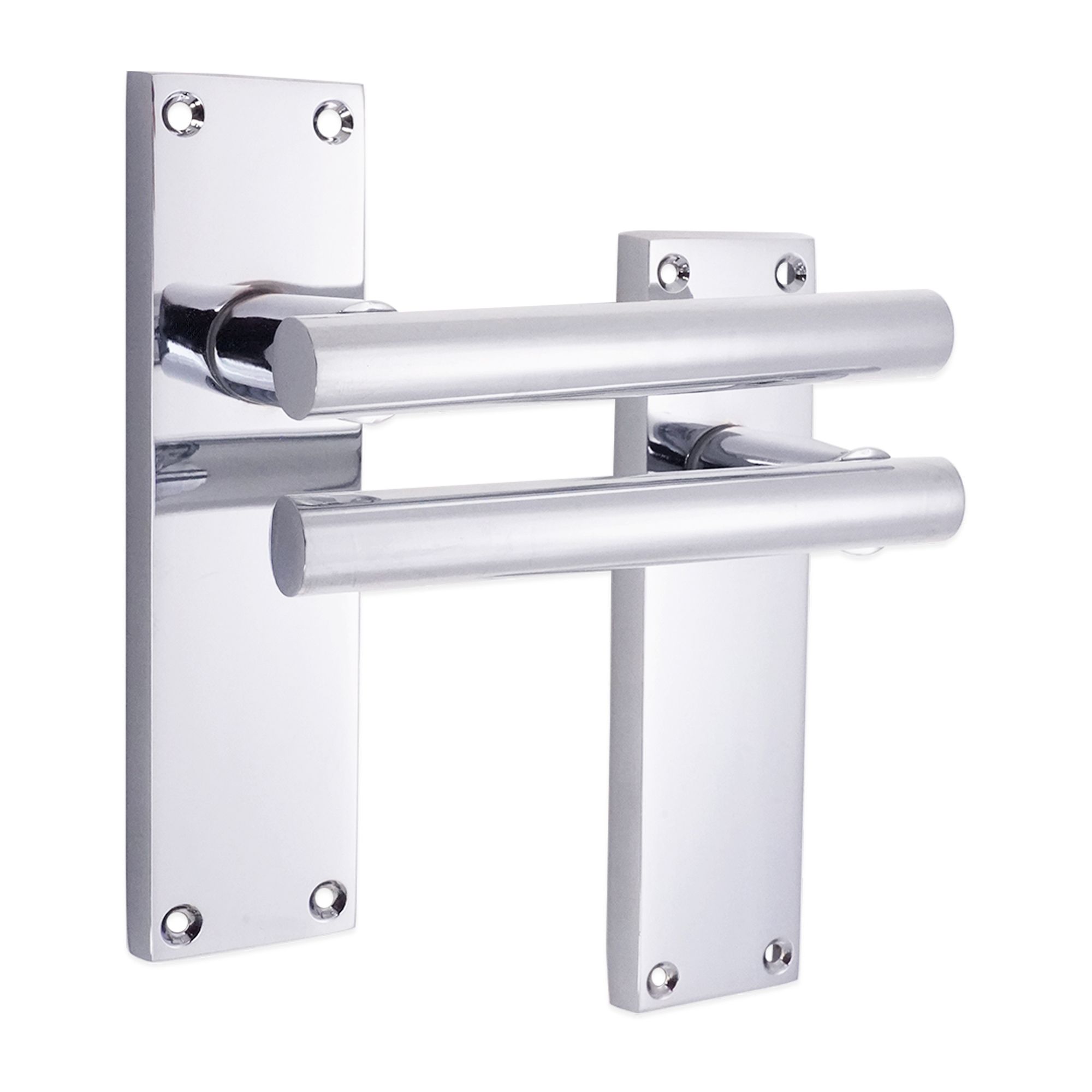 Our contemporary in style ‘Jura’ internal door handles pair on a sprung backplate, feature a T bar straight lever handle design. This can be used on their own, for regular passage doors with a tubular latch.