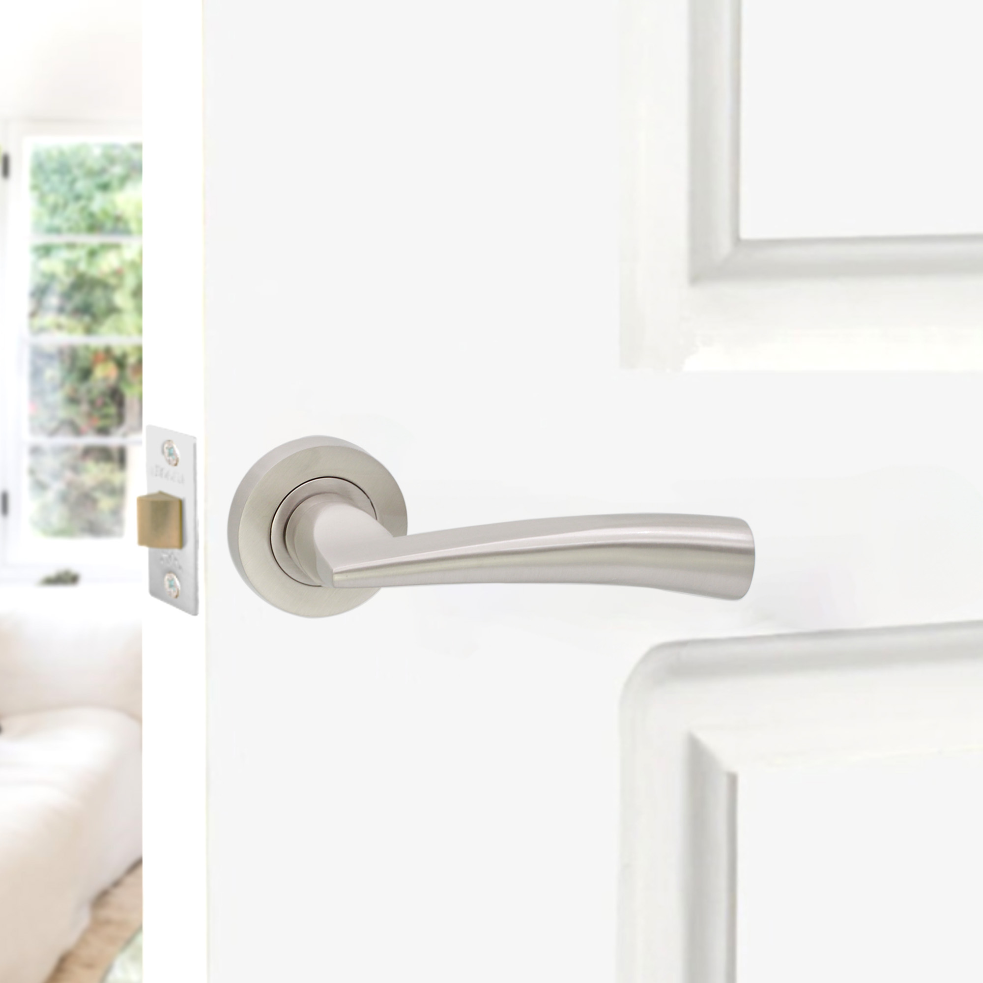 Satin Nickel Victorian Scroll Latch Lever Handle 115mm Door Handle Set