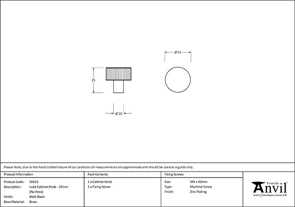 Matt Black Judd Cabinet Knob – 25mm (No rose) | 50425