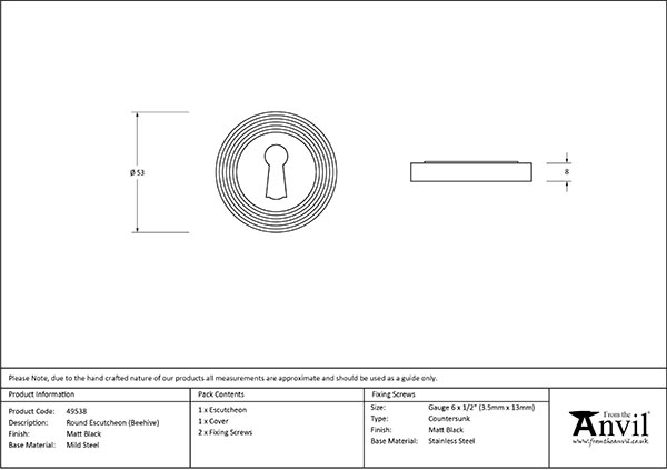 Matt Black Round Escutcheon (Beehive) | 49538