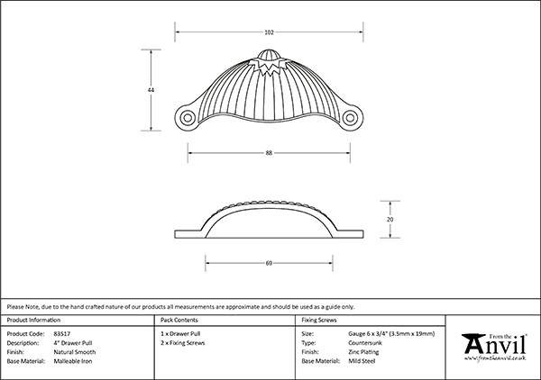 Natural Smooth 4″ Flower Drawer Pull | 83517