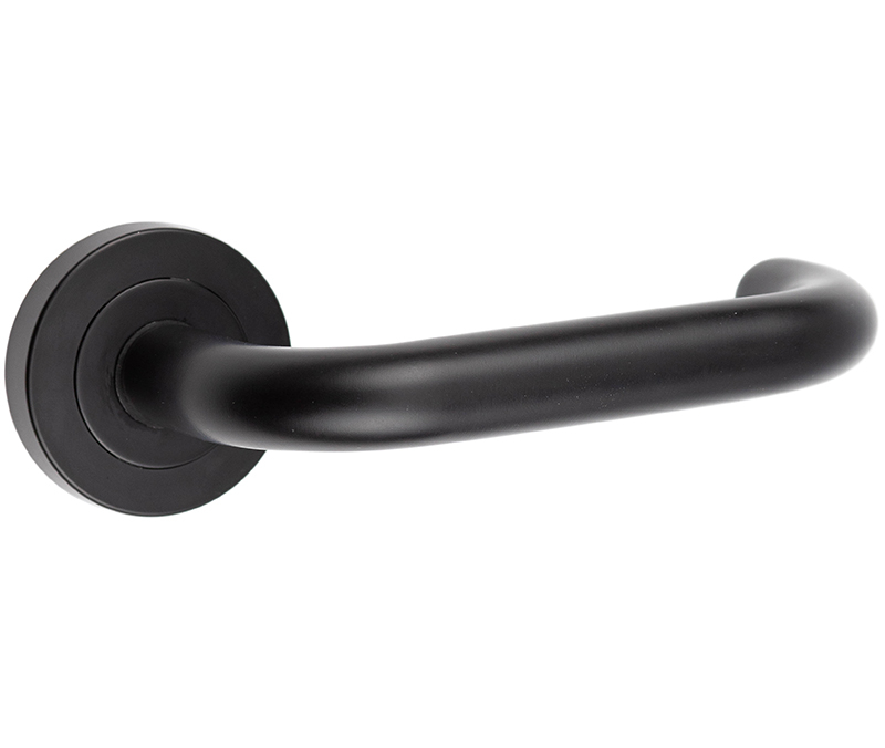 • The Nero Orbit Lever on Round Rose features a sleek, return