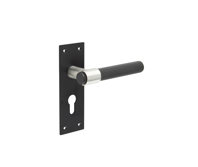 Nero T-Bar Door Handles on Euro Profile Lockplate Black