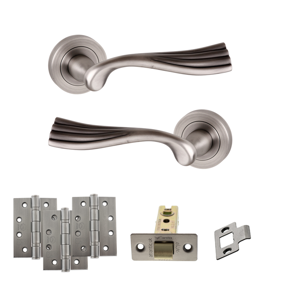 Premium Atlantic Hardware latch pack. Includes matching handles, hinges, and hardware in a high-quality finish. Perfect for quick, professional interior door upgrades.