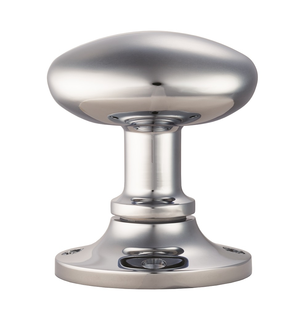 This smooth larger than average tactile oval shaped knob is substantial and easy to grip, giving a confident feel during operation. Sturdy and durable. Comes with a 10-year mechanical guarantee. 56mm Rose Dia