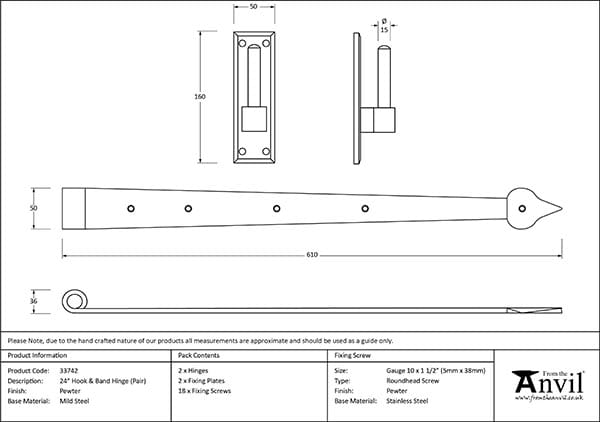 Pewter 24″ Hook & Band Hinge (pair) | 33742