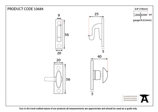 Our cupboard turn is delicately forged from mild steel and designed to keep cupboard doors closed.