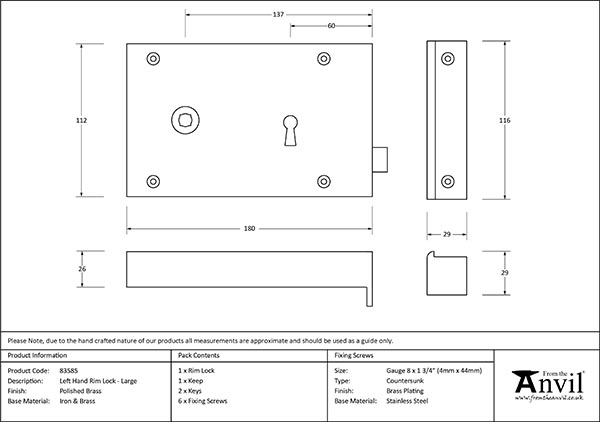 • Rim Lock Size: 180mm x 112mm x 26mm