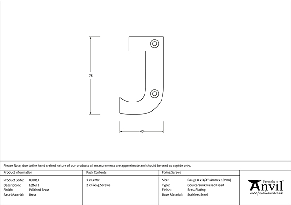 Our weighty, decorative letters will add the finishing touch to any entrance door. Sold in singles. Supplied with matching SS wood screws. Polished Brass is a simplistic, classic finish most synonymous with use in traditional period properties and interiors, yet works well paired with light colours and subtle textural details to achieve a luxurious, more modern aesthetic. Our Polished Brass products are manufactured from solid, unlacquered brass. Bright and reflective when polished, although as an unlacquered, ‘living’ finish it will continue to oxidise, meaning it will darken over time. If the product becomes too dark or tarnished, it can be polished to restore the brighter finish. Click to learn more about this Finish.