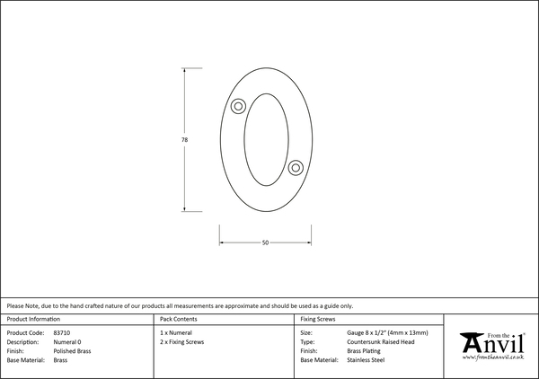 Polished Brass Numeral 0 | 83710