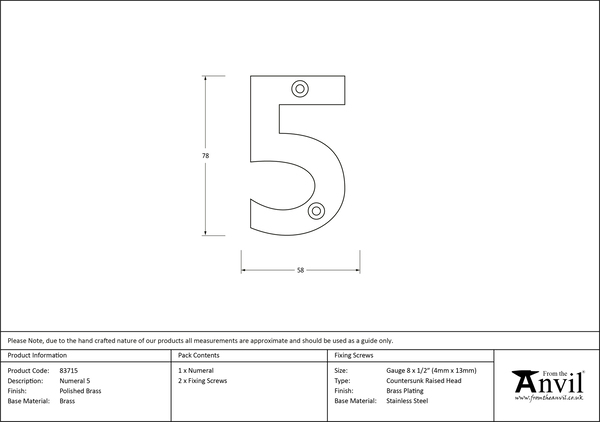 Polished Brass Numeral 5 | 83715