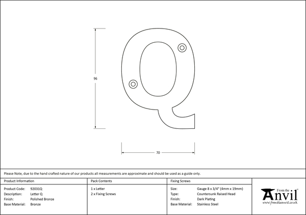 Polished Bronze Letter Q | 92031Q