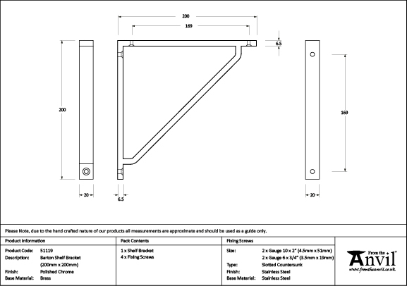 Polished Chrome Barton Shelf Bracket (200mm x 200mm) | 51119