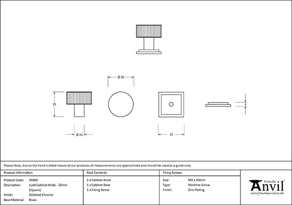 Polished Chrome Judd Cabinet Knob – 25mm (Square) | 50402