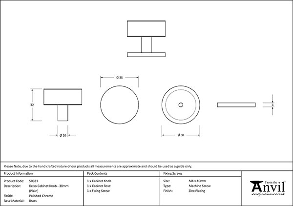 Polished Chrome Kelso Cabinet Knob – 38mm (Plain) | 50331