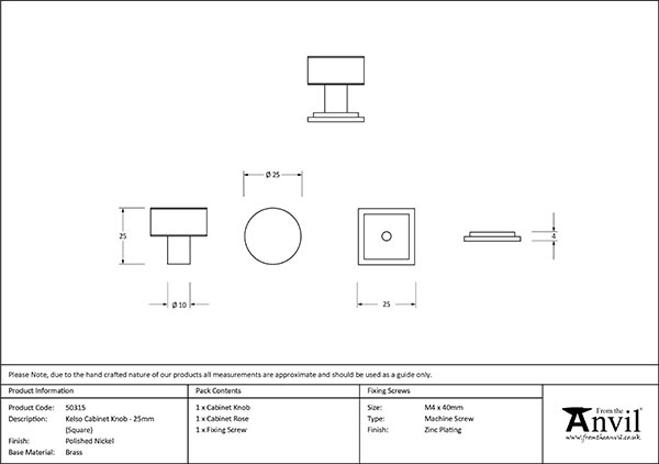 Polished Nickel Kelso Cabinet Knob – 25mm (Square) | 50315