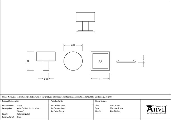 • Knob Size: 32mm Dia
