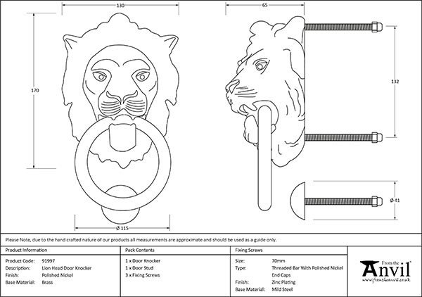 Our Lion Head door knocker is forged from solid brass and its intricate detailing emphasises the high-quality materials and manufacturing techniques used. A perfect design choice for external doors with matching products available.