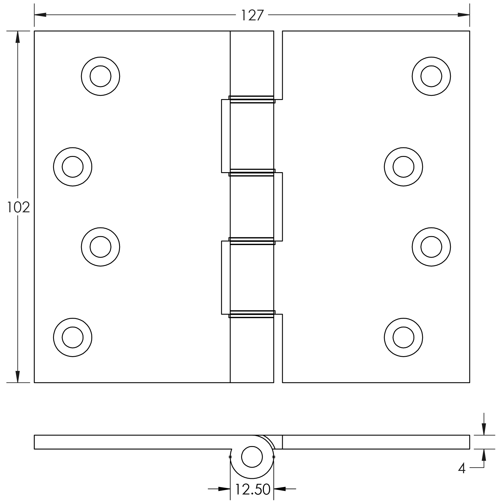 Projection Hinges 102x151x3.5mm Satin Chrome