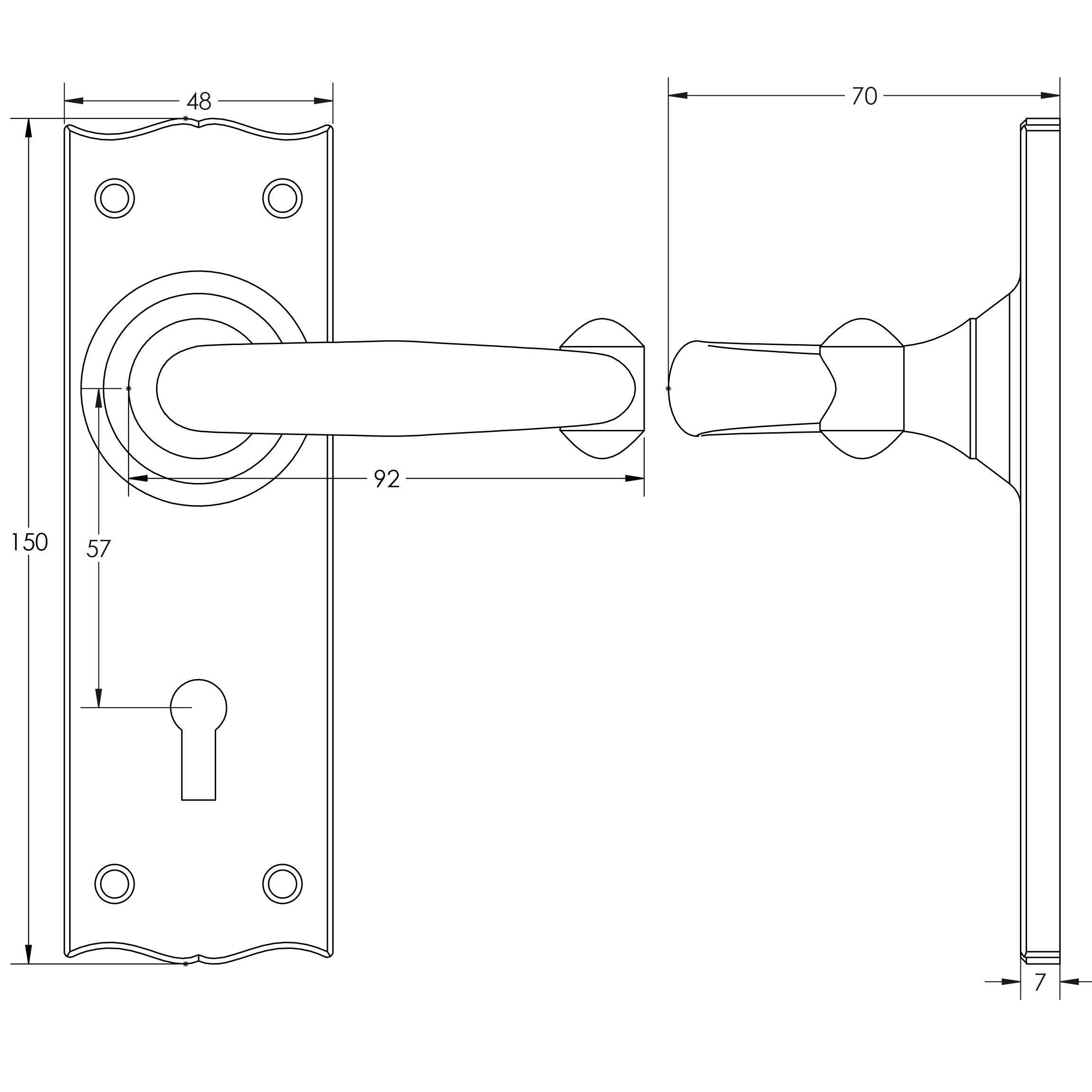 • Suitable for internal doors. Residential: Designed for residential applications. Plate Type: Lockplate with keyhole cutout. Dimensions: Handle Length: 104mm Projection: 36mm Backplate Dimensions: 170mm x 47mm