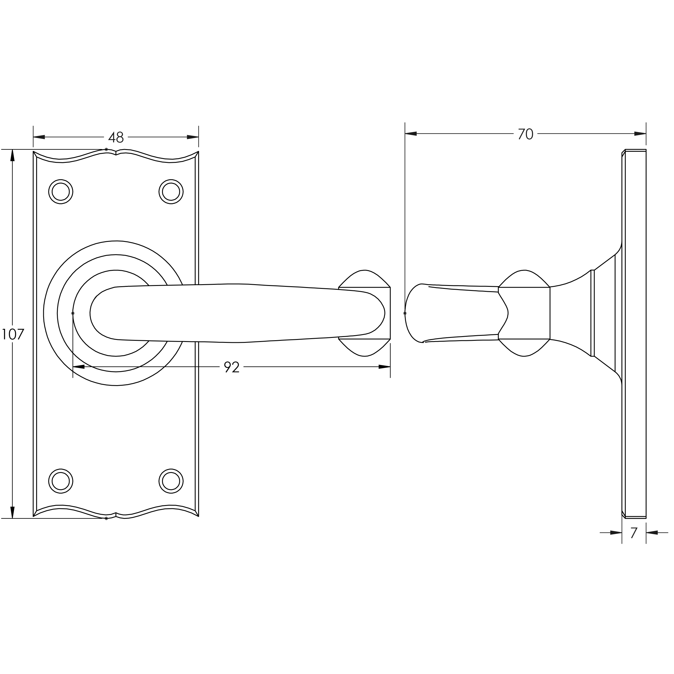 • Suitable for internal doors. Residential: Designed for residential applications. Plate Type: Short Latchplate for a minimal and elegant design. Dimensions: Handle Length: 104mm Projection: 36mm Backplate Dimensions: 128mm x 47mm Backplate Projection: 6mm