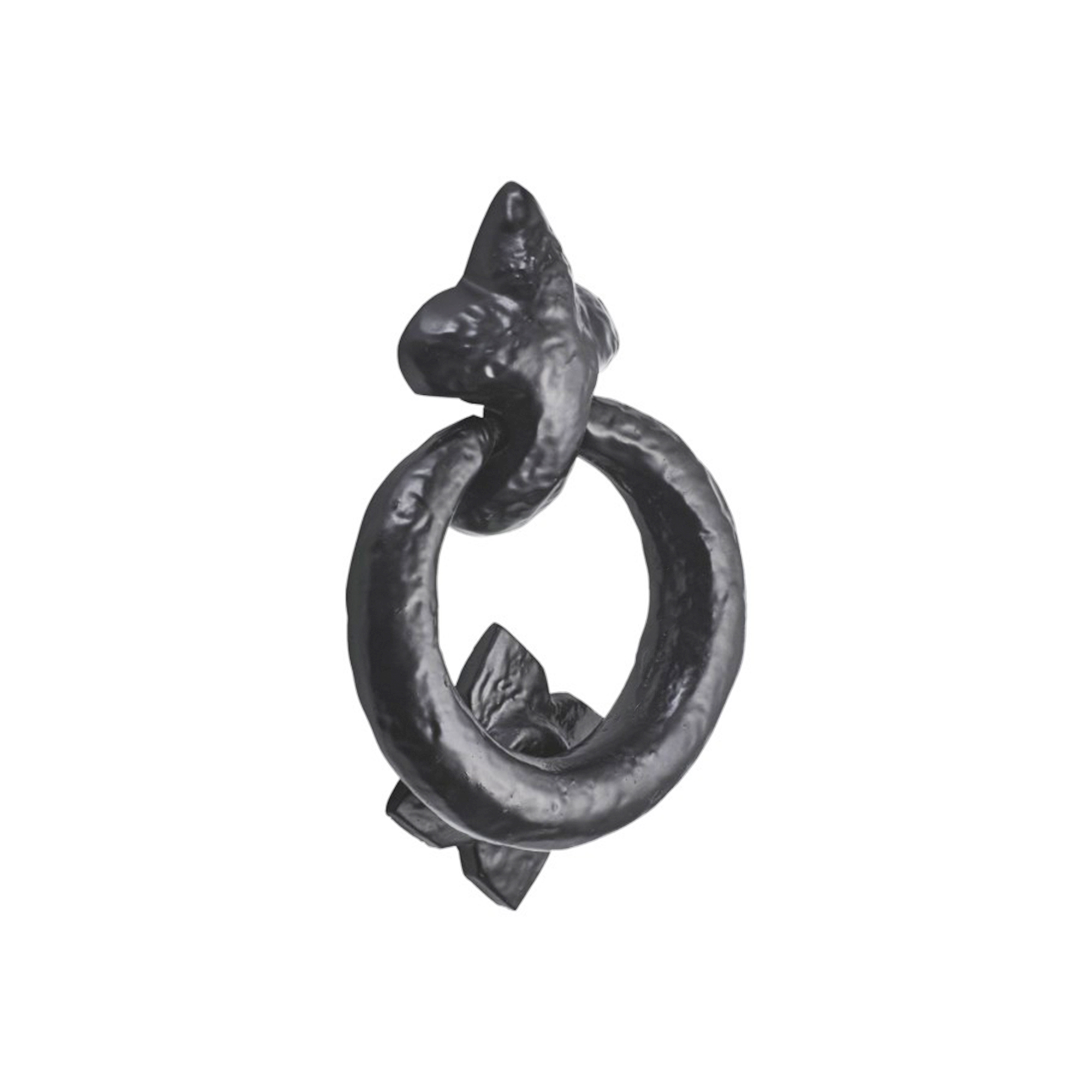 Our antique black ‘Ring Door Knocker’ is made of high quality cast iron. Protected with a high density zinc rich undercoat to increase durability, with a UV colour fast black powder coated finish. It has an attractive design with a concealed internal rear bolt through fixing that is only visible from internal side. The striking stud alerts the resident and protects the door from damage.