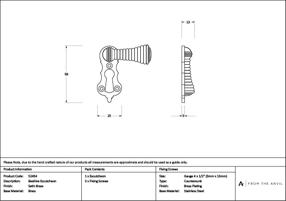Our vast range of escutcheons are used to decorate key holes, adding the finishing touch to any locking door. Our escutcheons are designed to complement all our mortice knob and lever on rose designs. This escutcheon uses a standard key hole, permitting its use with a multitude of locks. Supplied with matching SS wood screws. Satin Brass offers a sophisticated and more contemporary alternative to Polished and Aged Brass. The rich, warm undertones, and matt look of this finish exude luxury and are perfect for creating a statement in any space. Best suited to more modern homes and interiors, it works well when paired with darker tones and colours. Manufactured from solid brass, our Satin Brass products are brushed with a satin wheel during the final stages of manufacturing, giving them their distinctive, matt appearance, before a high quality matt lacquer is applied to the surface for protection. Click to learn more about this Finish.