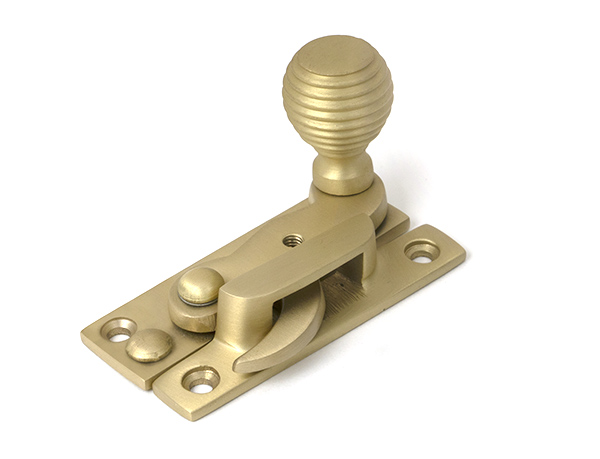 Our collection of sash furniture is available in various finishes designed to flawlessly match the rest of our products. This stylish Beehive hook fastener is used to secure a sash window. Designed to match the products in our Beehive range. Ideal for use on a narrow top rail due to a thin fixing keep. The locking mechanism operates by way of grub screw. Supplied with matching SS wood screws. Satin Brass offers a sophisticated and more contemporary alternative to Polished and Aged Brass. The rich, warm undertones, and matt look of this finish exude luxury and are perfect for creating a statement in any space. Best suited to more modern homes and interiors, it works well when paired with darker tones and colours. Manufactured from solid brass, our Satin Brass products are brushed with a satin wheel during the final stages of manufacturing, giving them their distinctive, matt appearance, before a high quality matt lacquer is applied to the surface for protection. Click to learn more about this Finish.