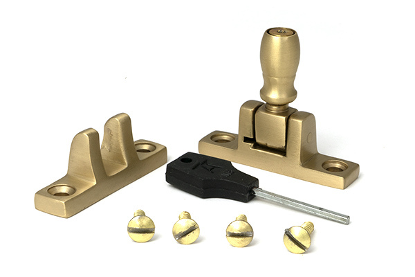 Our collection of sash furniture complements all other products within the range, allowing a consistent finish throughout a property or project. Designed to match the Mushroom door and cabinet furniture in the range. A classic brighton fastener with a narrow fixing plate, making it perfect for use on upvc sliding sash windows. The curved edges of the keep & fastener offer a subtle finish to the product. The keep is fitted to the bottom rail of your sash window, and the fastener secures into it when the window is in the closed position. Sold in singles. Supplied with matching SS wood screws. Satin Brass offers a sophisticated and more contemporary alternative to Polished and Aged Brass. The rich, warm undertones, and matt look of this finish exude luxury and are perfect for creating a statement in any space. Best suited to more modern homes and interiors, it works well when paired with darker tones and colours. Manufactured from solid brass, our Satin Brass products are brushed with a satin wheel during the final stages of manufacturing, giving them their distinctive, matt appearance, before a high quality matt lacquer is applied to the surface for protection. Click to learn more about this Finish.