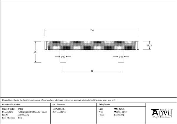 Satin Chrome Full Brompton Pull Handle – Small | 47098