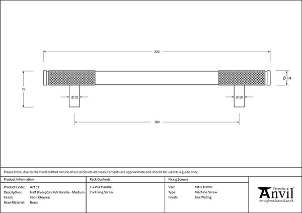 Satin Chrome Half Brompton Pull Handle – Medium | 47151