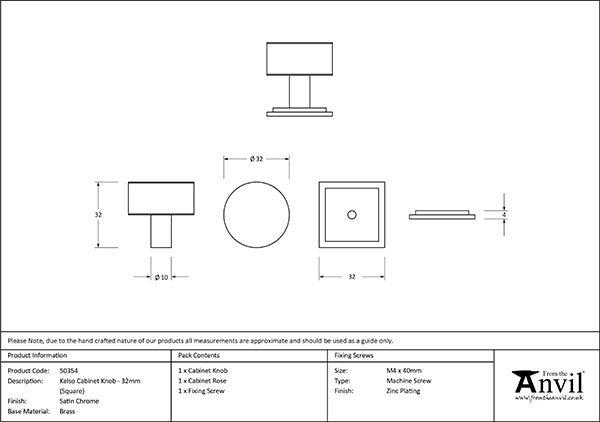 Satin Chrome Kelso Cabinet Knob – 32mm (Square) | 50354