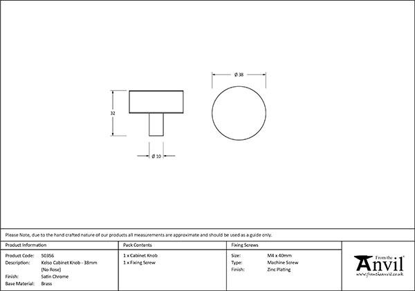 Satin Chrome Kelso Cabinet Knob – 38mm (No rose) | 50356