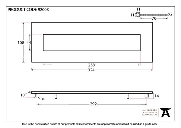 • Opening Size: 258mm x 44mm
