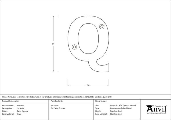 Our weighty, decorative letters will add the finishing touch to any entrance door. Sold in singles. Supplied with matching SS wood screws. Satin Chrome is a beautifully understated, more subtle alternative to some of our polished finishes; its cool, blue traces and less reflective appearance make it a favourable choice for modern homes and interiors, yet it also works well in period properties where a contemporary touch is desired. Manufactured from a base of solid brass with a high quality chrome plating applied to its surface, our Satin Chrome products are brushed with a satin wheel during the final stages of manufacturing, giving them their distinctive, matt appearance, before a high quality matt lacquer is applied to the surface for protection. Click to learn more about this Finish.