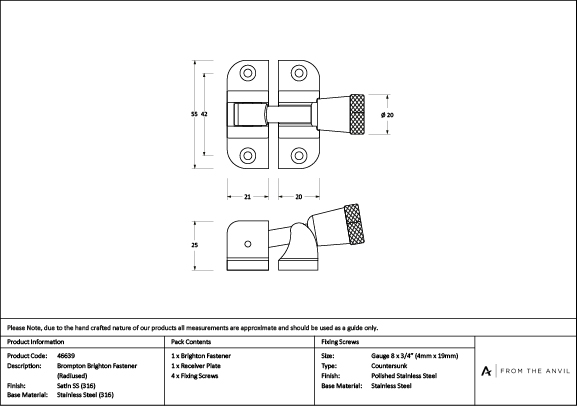 Our collection of sash furniture complements all other products within the range, allowing a consistent finish throughout a property or project. Designed to match the Brompton door, window, and cabinet furniture in the range. A classic brighton fastener with a narrow fixing plate, making it perfect for use on upvc sliding sash windows. The curved edges of the keep & fastener offer a subtle finish to the product. The keep is fitted to the bottom rail of your sash window, and the fastener secures into it when the window is in the closed position. Sold in singles. Supplied with matching SS wood screws. Our Satin Marine 316 Stainless Steel products are ideal for those looking for a hardwearing, low sheen finish. its cool tones and lightly brushed surface make it distinctly contemporary, and work best when paired with lighter tones and subtle textures complementing clean, modern aesthetics. Manufactured with high concentrations of chromium and nickel, our Satin Marine Stainless Steel is grade 316 and offers extremely resilient, corrosion resistant properties, exceeding 1,000+ hours salt testing. This finish is an excellent choice for coastal locations and highly polluted environments. Click to learn more about this Finish.