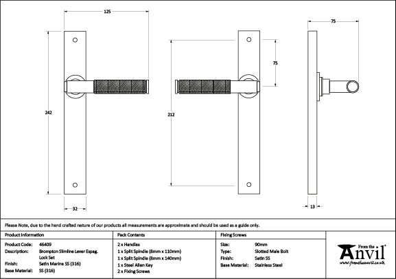 Satin Marine SS (316) Brompton Slimline Lever Espag. Latch Set | 46409