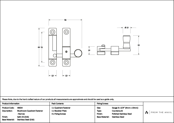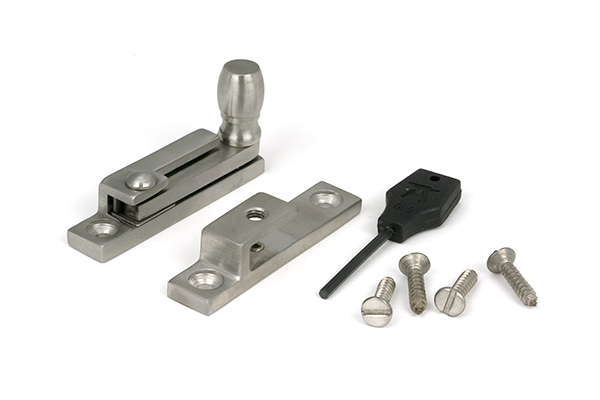 Our collection of sash furniture complements all other products within the range, allowing a consistent finish throughout a property or project. Designed to match the Mushroom door and cabinet furniture in the range. A stylish quadrant fastener used to secure your sash window. Ideal for use on a narrow top rail due to a thin fixing keep. The fastener has a locking mechanism by way of a grub screw. Sold in singles. Supplied with matching SS wood screws. Our Satin Marine 316 Stainless Steel products are ideal for those looking for a hardwearing, low sheen finish. its cool tones and lightly brushed surface make it distinctly contemporary, and work best when paired with lighter tones and subtle textures complementing clean, modern aesthetics. Manufactured with high concentrations of chromium and nickel, our Satin Marine Stainless Steel is grade 316 and offers extremely resilient, corrosion resistant properties, exceeding 1,000+ hours salt testing. This finish is an excellent choice for coastal locations and highly polluted environments. Click to learn more about this Finish.