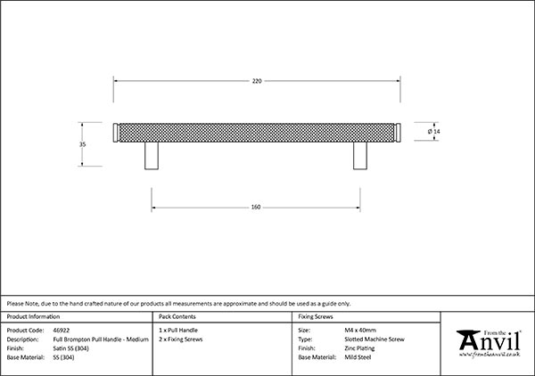 Satin SS (304) Full Brompton Pull Handle – Medium | 46922