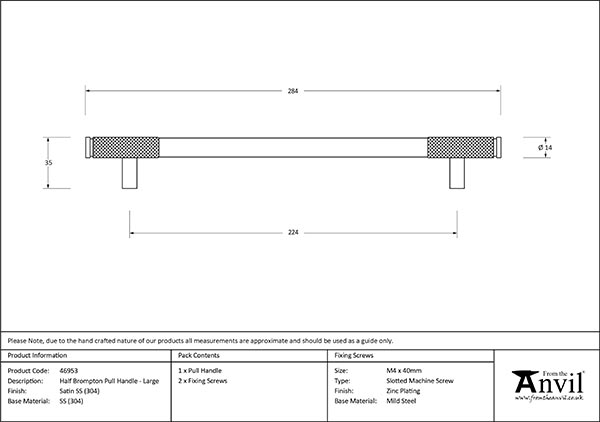 Satin SS (304) Half Brompton Pull Handle – Large | 46953