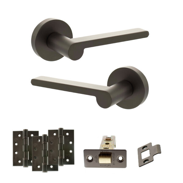 Senza Pari Darrio Door Handle Pack (Latch Set - 3" CE Latch, 4" Slim Knuckle Hinges x2) - Urban Dark Bronze