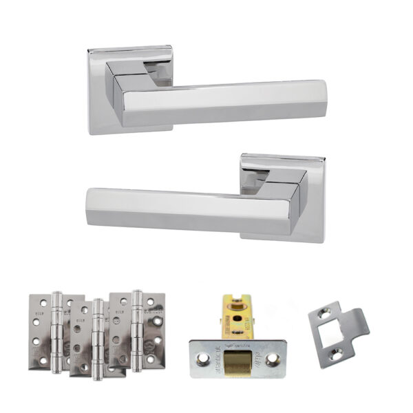 Senza Pari Fasana Door Handle Pack (Latch Set – 2.5″ CE Latch, 4″ Fire Rated Hinges x3) – Polished Chrome