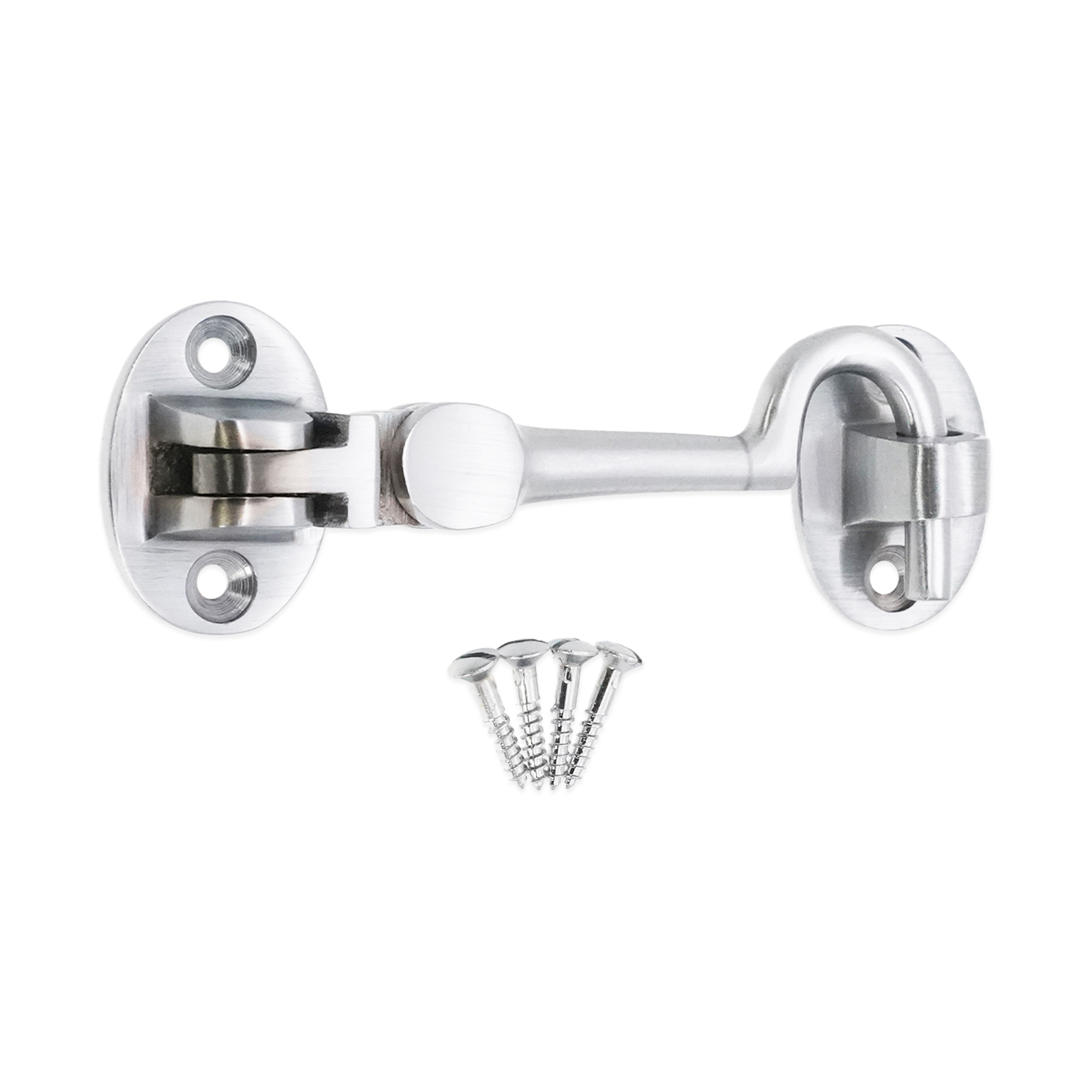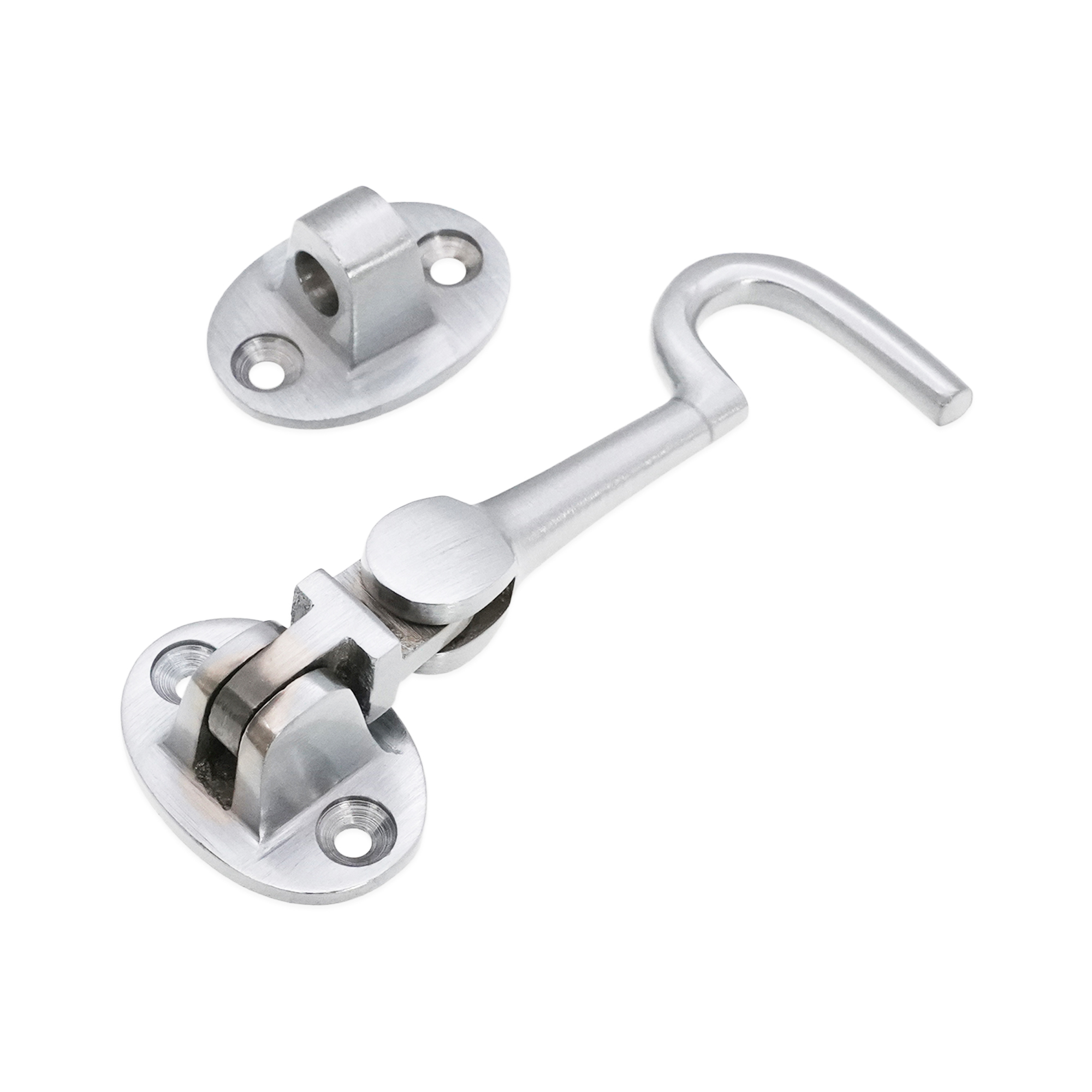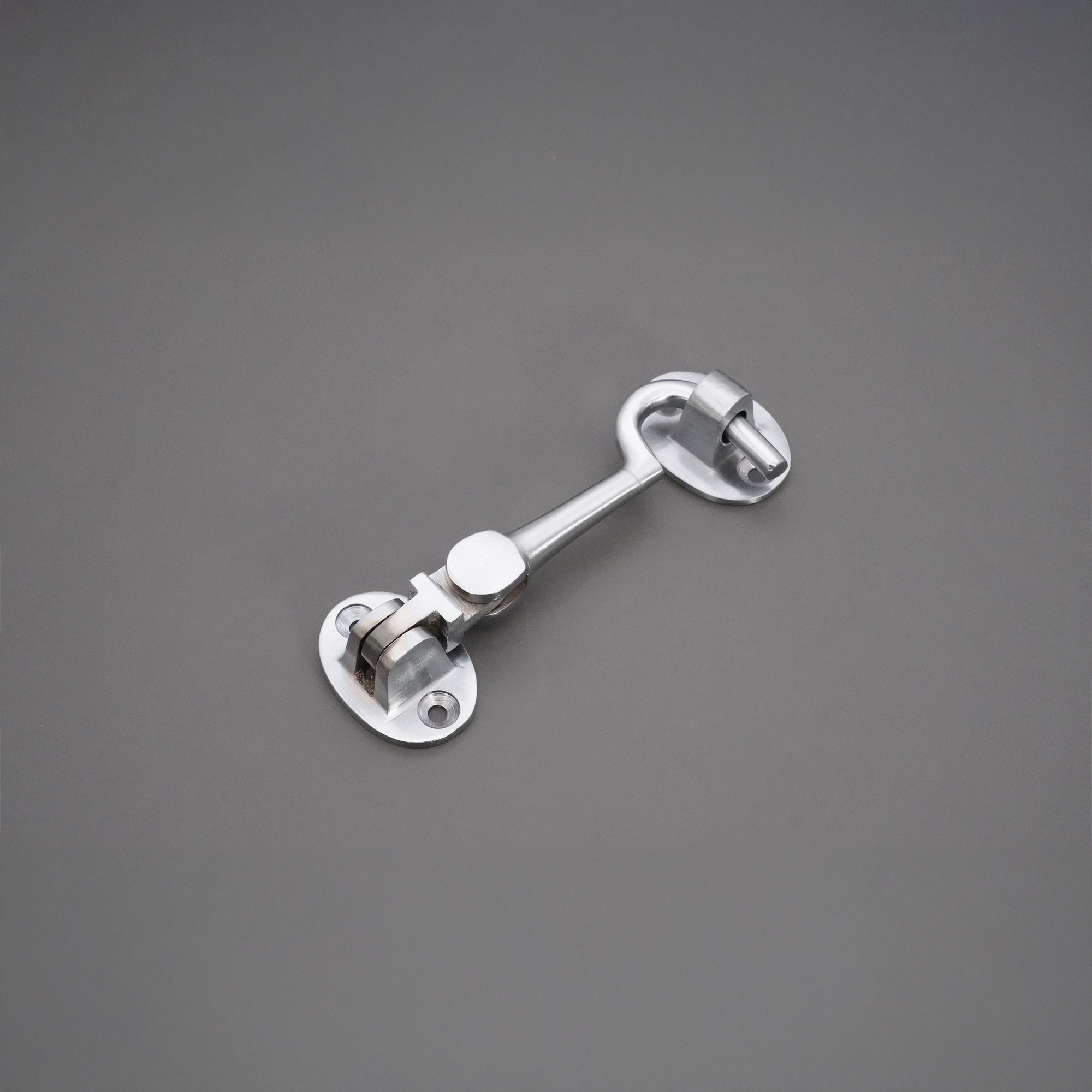Silent pattern solid brass ‘Cabin Hook’ and eye catch, ideal for restricting the movement of a door or gate. The contemporary finish adds a sophisticated and solid look to it with an excellent durability for use as a privacy hook.