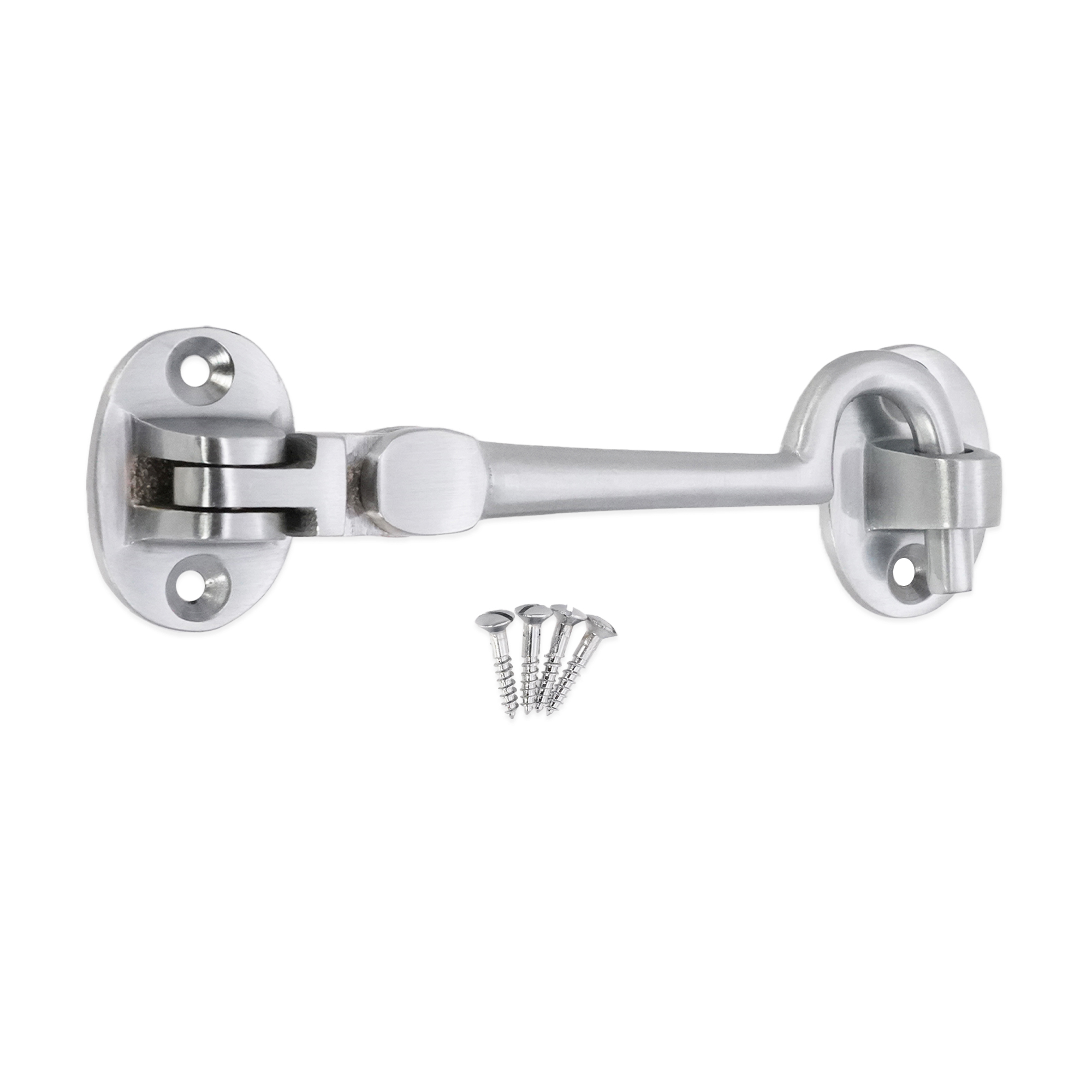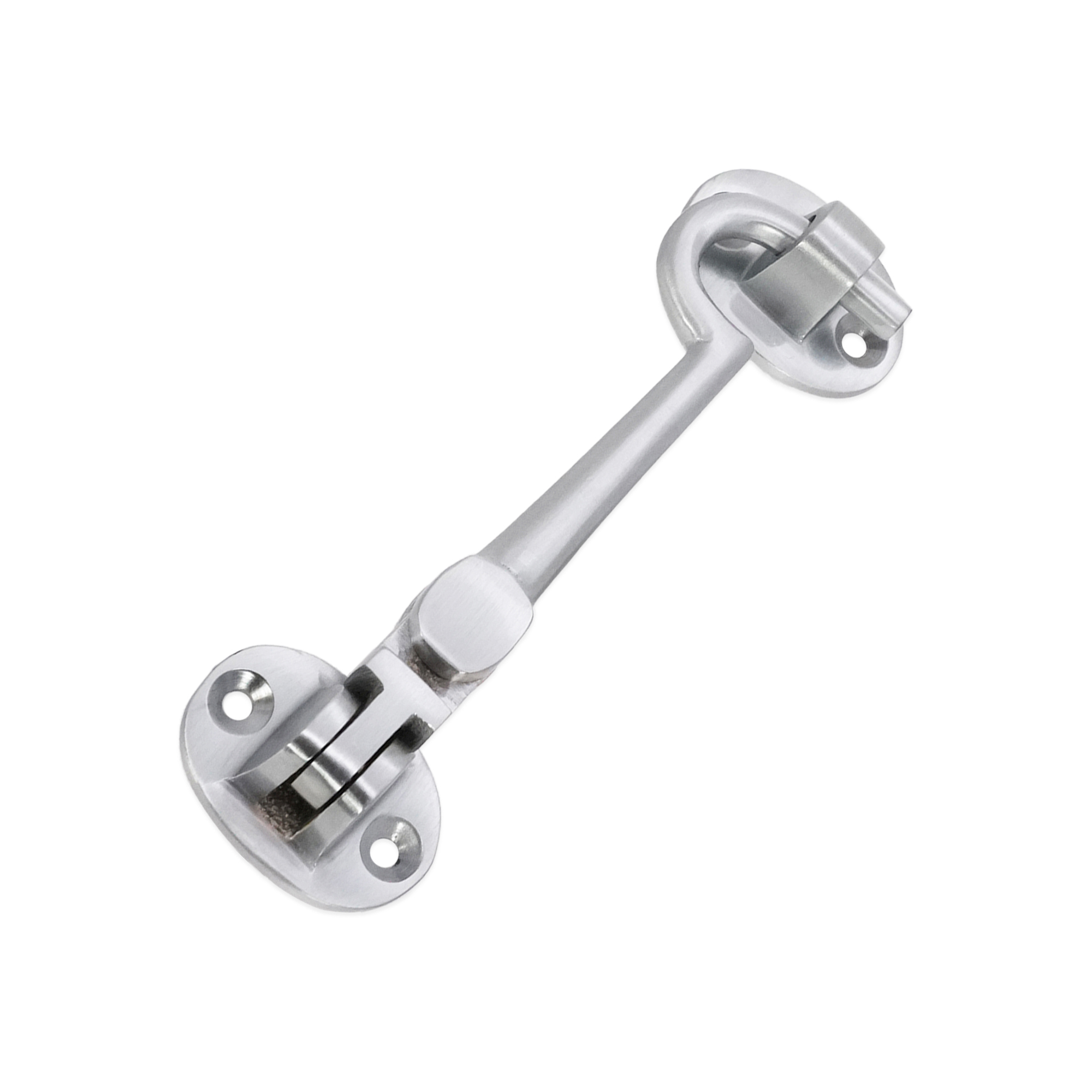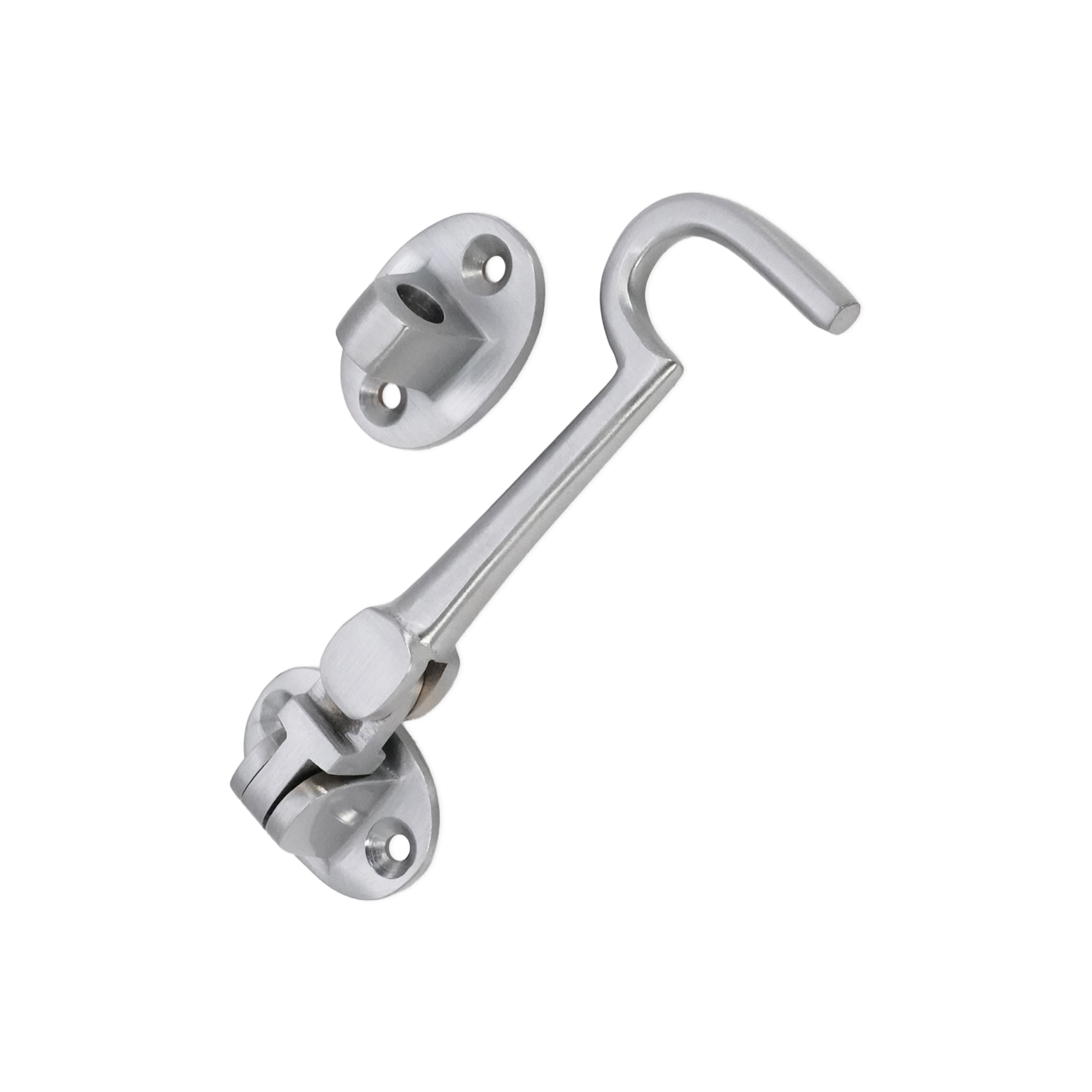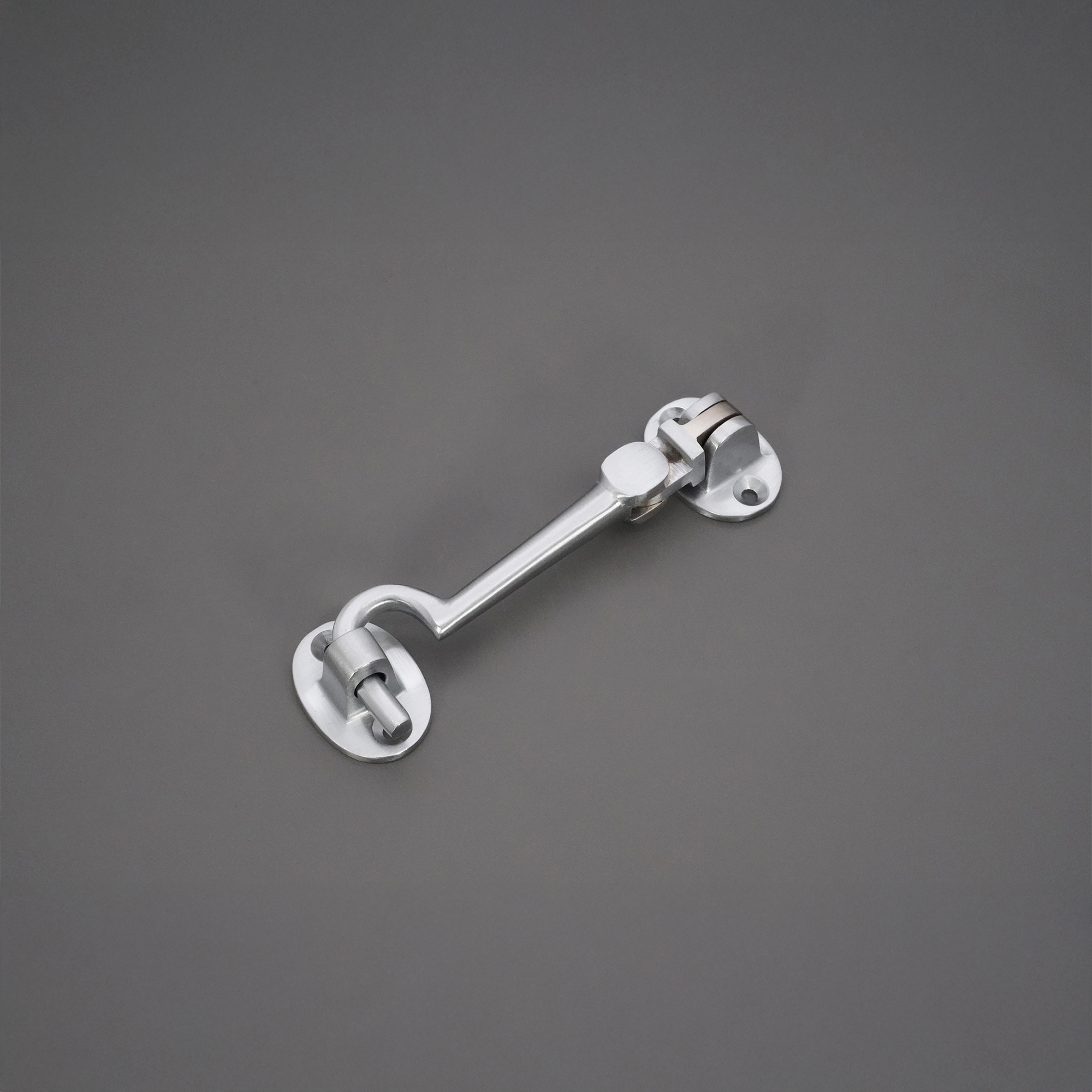 Silent pattern solid brass ‘Cabin Hook’ and eye catch, ideal for restricting the movement of a door or gate. The contemporary finish adds a sophisticated and solid look to it with an excellent durability for use as a privacy hook.