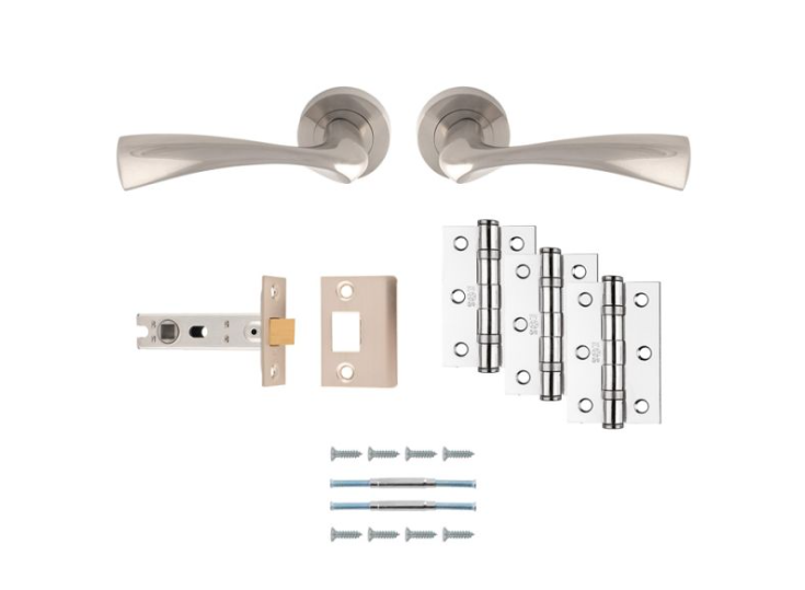 Upgrade your interior doors with the Ultimate Door Pack (UDP007SN/INTB) Sintra Latch Pack. This essential door hardware kit combines a smooth tubular latch with premium lever handles and hinges for a consistent, modern look throughout your home.