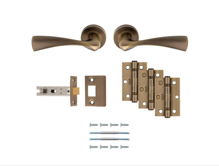 Upgrade your interior doors with the Ultimate Door Pack (UDP007AB/INTB) Sintra Latch Pack. This essential door hardware kit combines a smooth tubular latch with premium lever handles and hinges for a consistent, modern look throughout your home.