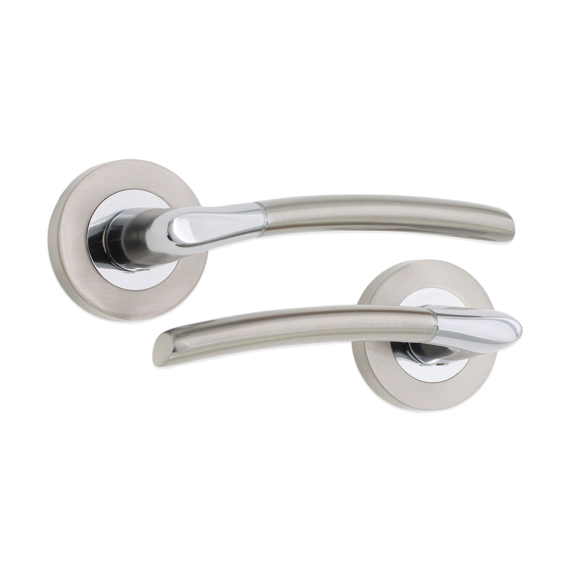 Brass Slavia Lever on Rose Dual Tone Door Handle Set