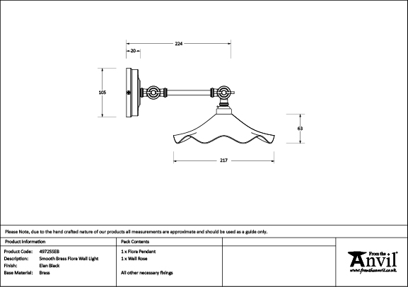 Smooth Brass Flora Wall Light in Elan Black | 49725SEB