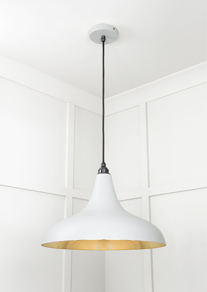 With their sleek, contemporary design, our Frankley pendants are incredibly versatile, creating an eye-catching statement in any interior. Hang individually or in a group to completely transform your space. All our pendants are made to order with a three to four week lead time. Our light fittings are dimmable when fitted with a compatible dimmable LED bulb. Bulb: LED Only – 6W Maximum (purchased separately) Supplied fully wired with matching ceiling rose and all necessary fixings. 1m of black fabric cable provided as standard. Our pendants are available in a wide range of colours and finishes. We also offer a bespoke colour service – please contact us for further information. Spun from solid brass and thoroughly polished, our Smooth Brass lights offer a luxurious final look. When lit, the sleek brass interior glistens and emits a soft, warm glow.