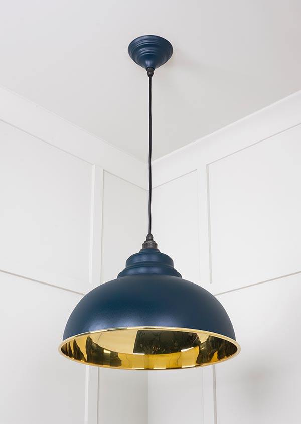 Our Harborne pendants embody classic British design. Their rounded edges and unique shape will create an eye-catching focal point in any room. All our pendants are made to order with a three to four week lead time. Our light fittings are dimmable when fitted with a compatible dimmable LED bulb. Supplied fully wired with matching ceiling rose and all necessary fixings. 1m of black fabric cable provided as standard. Bulb: LED Only – 6W Maximum (purchased separately) Our pendants are available in a wide range of colours and finishes. We also offer a bespoke colour service – please contact us for further information. Spun from solid brass and thoroughly polished, our Smooth Brass pendants offer a luxurious final look. When lit, the sleek brass interior glistens and emits a soft, warm glow.